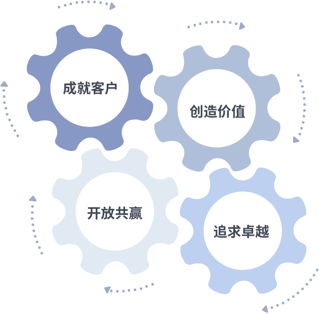 成就客户是一切决策的出发点,创造价值是衡量所有工作的标准,追求卓越是304am永利做事做人的态度,开放共赢是304am永利的格局也是最终的结果。价值观的齿轮环环相扣,推动着组织里的每个人不断向前。